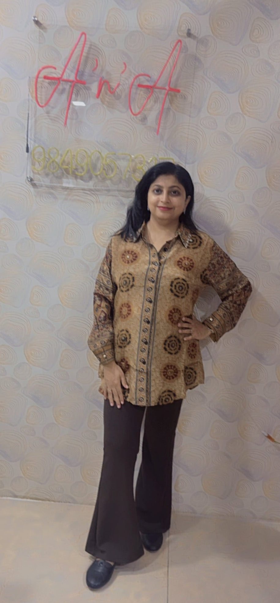 Designed for real working days and effortless evenings, our Ajrak Crepe Silk Shirt blends breathable comfort with timeless craftsmanship. The fluid drape of crepe silk feels soft on the skin while the seasonless Ajrak print brings quiet statement energy to your wardrobe.