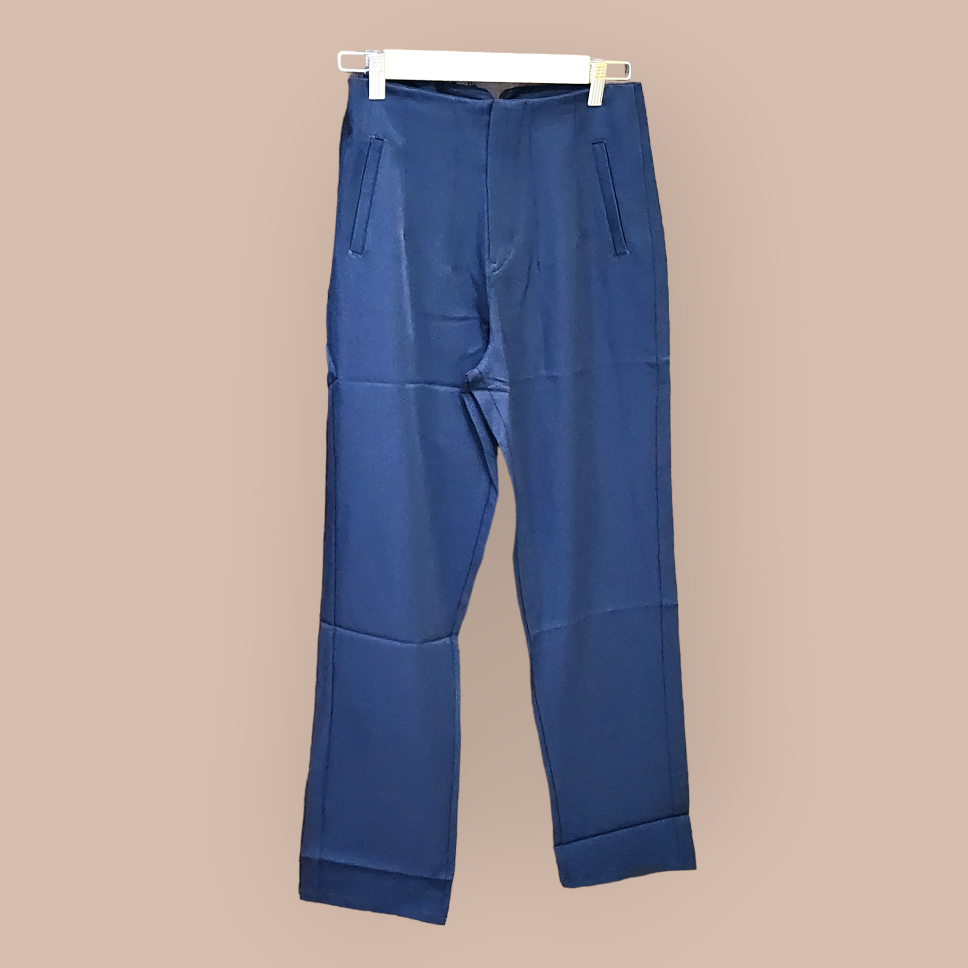 Korean Straight Navy Blue Pants are unique and classy and offer all-day comfort. The fabric of these pants is similar to ZARA and is stretchable, durable, and skin-friendly. These pants provide all-day comfort and are perfect for office-going women who believe in dressing up like a fashionista in the most comfortable clothing. Branded pants. Quality Assured