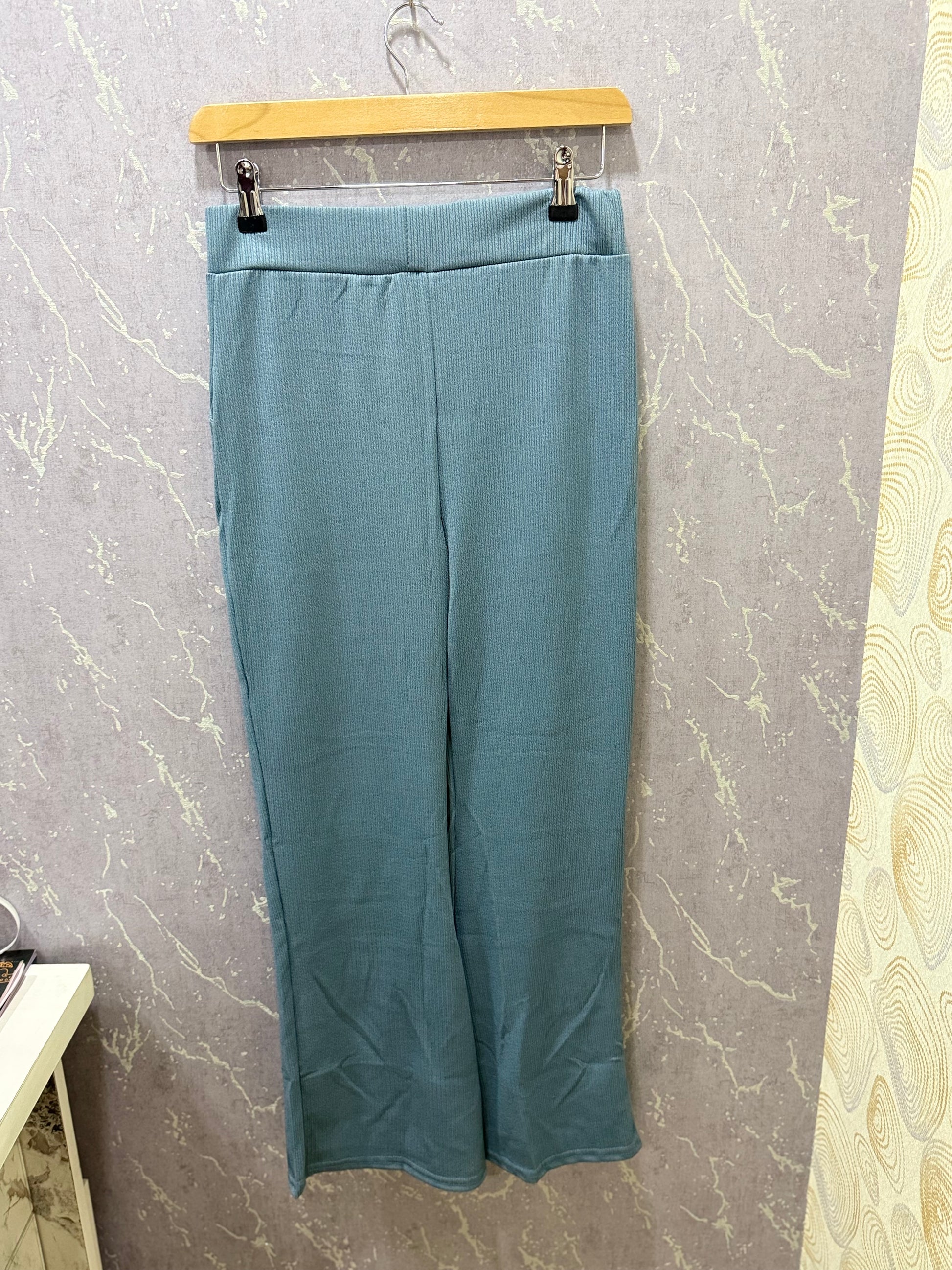 Rib-Stretchable Turquoise Blue Bell Bottoms